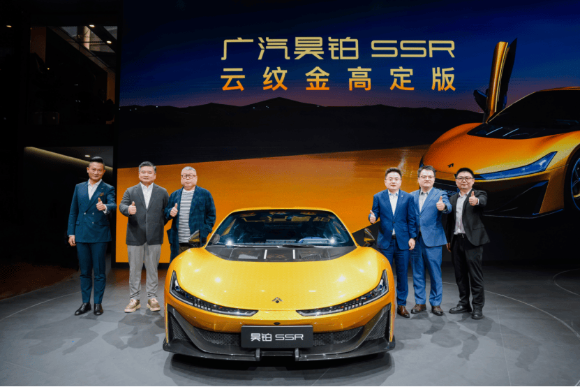 11月22日,广汽昊铂携手顺章汽车在广州车展正式发布广汽昊铂SSR云纹金高定版,官方指导价148.6万元,全球限量发售,同时也为车主带来极速驾驶体验,全时贴心服务,精英圈层社交,奢享旅居生活,专属交付仪式等多项权益;云纹金高定版不仅延续广汽昊铂SSR在极致性能与尖端科技上的卓越基因,更以深厚东方底蕴与高端定制文化,重新定义“中国超跑”的精神内核。