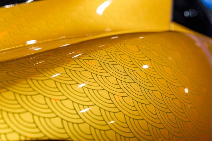 云纹金高定版本,更在广汽昊铂SSR极致性能基础上,注入深厚的文化哲思与美学追求。深度植根中华传统文化。车身采用暖调金色涂装,灵感源自经典超跑黄的高辨识度基因,并赋予黄金质感以传递尊贵属性。尤为瞩目的是,全车手工绘制逾2万个“朵云纹”, 耗时高达 200 余小时;设计灵感源自魏晋至唐宋时期的祥瑞纹样,曾见于敦煌经卷与宋代瓷器,寓意“吉祥聚合”,每一笔云纹均由匠人纯手工精雕细琢,覆盖整车表面,使每台广汽昊铂SSR云纹金高定版车型皆成为独一无二的移动艺术品。