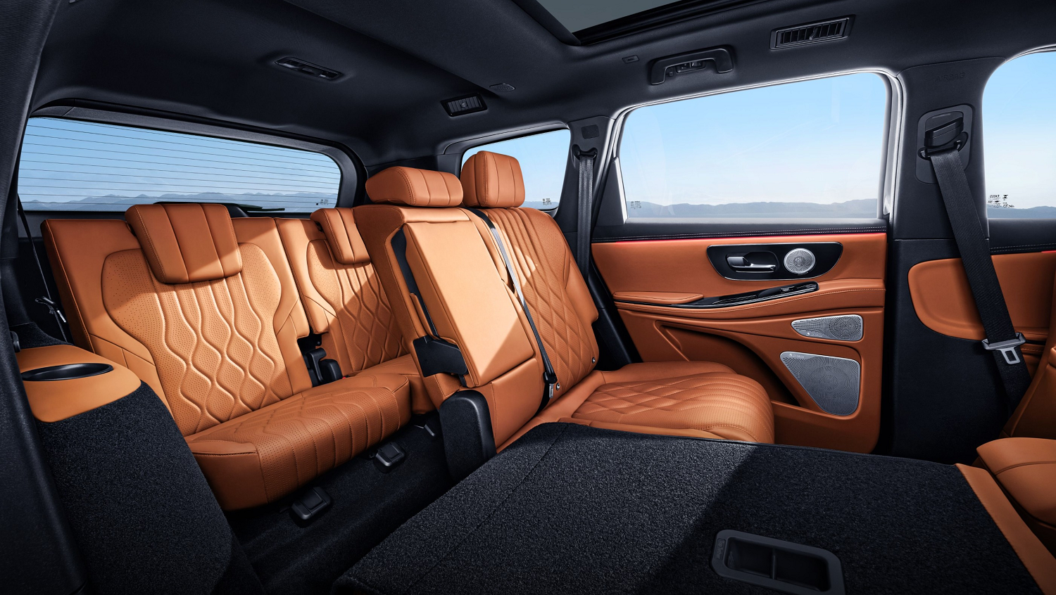 大家庭出行,最怕“挤”字当头。揽月与揽月C-DM车长5010mm、车宽1940mm,车高1800mm,轴距达2900mm,拥有出色的基础空间,同时通过设计优化,让三排座椅空间分配更合理,其中揽月二、三排头部空间分别为1003mm、961mm,三排最大有效腿部空间804mm;揽月C-DM二排腿部空间901mm,三排腿部空间793mm,高个子长辈落座二排,头部腿部皆有富余,无需刻意压低坐姿;大孩子或成年晚辈坐三排,也不显局促。此外,揽月与揽月C-DM均提供六座、7座两种布局,除了适配多人口家庭出行需求,也能适配商务出行场景。